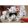 陶瓷茶具的特點是傳熱較慢、保溫適中,不會發生任何化學反應,沏茶能獲較好的色、香、味,而且這類茶具的造型美觀、質感豐富、裝飾自然,具有頗高的欣賞價 值和收藏價值。德化陶瓷茶具,歷史悠久,素有瓷都之稱。德化陶瓷從什么時代開始,現在無據可查,早在封建時代,德化陶瓷就大量出口海外,從廣東陽江海域打 撈上來的“南海一號”,是南宋時期沉下去的,船里就裝載了手工精細,工藝精美的德化陶瓷,躺在海底800來年,打撈上來還是完好無損,大多數被定為國家一 級、二級文物,由此可見,德化陶瓷的技術文化之 精湛,德化勞動人民的無窮智慧。隨著歷史的延伸,技術的發展,今天的德化陶瓷更是出色。陶瓷品種甚多,有精美輕巧的薄胎瓷、典雅素凈的青花瓷、色彩絢麗的 粉彩瓷、五彩繽紛的顏色釉瓷等,是中華民族瓷文化之精華。用來泡茶,不僅茶香四溢,蓬蓽生輝,更可較好領略茶色的美妙,是我國茶具中的瑰寶,深受國內外茶 客厚愛。宋代歐陽修有詩選道:“喜見紫甌吟且酌,羨君瀟灑有余清。”