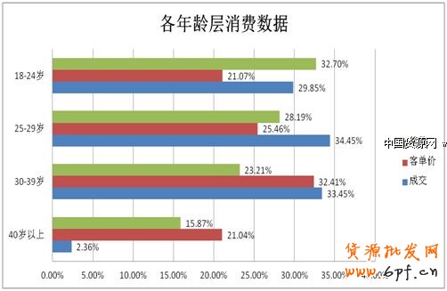 從淘寶女裝買家各年齡層消費能力數據上可以很清楚的看出:從筆數上來講,18~24歲的人群占比最高,說明這個年齡層的購買頻率是最高的,從中可以推導出來逛淘寶女裝頻率最高的也是這個人群。但這群人客單價卻比較低,這和年齡層的特性有關。這個年齡層多數為學生,本身無經濟能力的收入,但喜歡快速流行、復制率高、價格相對便宜的女裝商品。25~29歲這個年齡層,在女裝成交、筆數、單價方面處于比較均衡的一個位置。這個年齡層的買家多數已經參加工作或者工作已有一定年限,經濟能力的獨立或者提升,出于工作上的要求或者本身的追求,會對商品本身的品質、款式有一定的要求,開始不盲目的追求流行,在追求流行的同時會結合是否適合自己本身需求。30~39歲這各年齡層的女裝買家基本為人夫(父)或者為人母。這個年齡層顯著的特點是在購買女裝上客單價會高于前面兩個年齡層,購買轉化率會比較高,有比較強的女裝店鋪歸屬感。從三個年齡層購買筆數的對比可以看出,這個年齡層購買量不高,但成交金額較高,說明有較強的女裝商品高單價承受能力,從中可以推導出這個年齡層的買家對女裝商品的品質有比較高的要求。 40歲以上的女裝買家,由于歲月的流逝在身材方面對服裝版型有比較高的要求,而體現版型這項恰恰是網購的短處。外加由于文化、觀念、習慣等因素也使其中一部分的買家不習慣網購,或者是找其他人代買。但從淘寶女裝歷史數據上體現,目前這年齡層對應的市場正在悄悄的崛起。