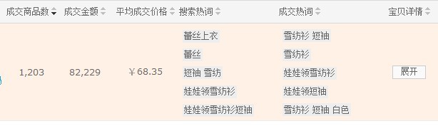 剛開始的時候可不是這樣的,搜索熱詞主要分布為蕾絲、大碼、雪紡衫、短袖這幾個詞,成交熱詞一直沒有改變??粗@張圖就要意識到,產品現在的問題是很 明顯的了,搜索的詞和成交的詞相差過大,搜索主要集中在蕾絲、大碼、雪紡衫、短袖這個幾個詞,但是成交主要集中在娃娃領、白色、雪紡衫、短袖。習慣性的把 搜索熱詞叫做強加詞,因為這些詞是你剛開始賦予這個產品的,根據你的感覺或者你對產品的理解和對以往的數據的分析用自己的主觀意識給你的產品做的寶貝標題 或者直通車的關鍵詞的選擇,而成交熱詞是一種選擇詞,是買家對于你產品的歸類的選擇,是我們需要去理解和去優化的。