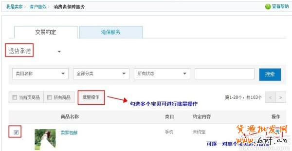 1、賣家可進入“賣家中心”通過“消費者保障服務”-“交易約定”管理模塊進行設置