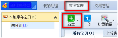 (一) 登陸"淘寶助理"后,進(jìn)入"寶貝管理"頁面。