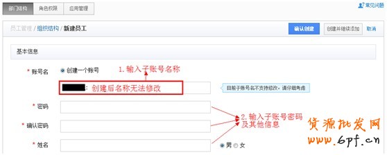 如圖8,在菜單員工管理>部門結(jié)構(gòu)下點(diǎn)擊新建員工,按照?qǐng)D8提示將員工和子賬號(hào)信息錄入即可。