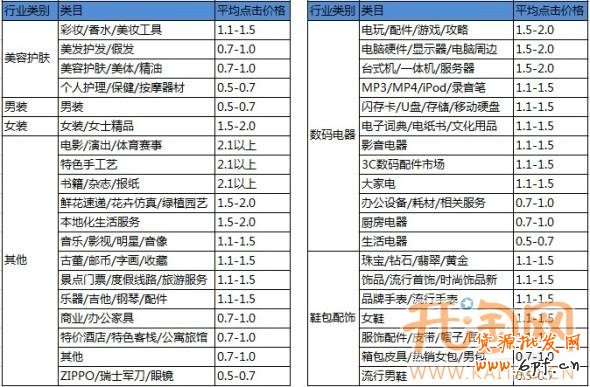 那么,有的掌柜也許會有這樣的困惑,那應該出多少錢才合適呢?下面為掌柜們提供近期各一級類目的平均出價供大家參考。