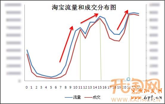 上圖是淘寶每天的流量和成交分布圖。 藍色曲線圖是流量分布圖,紅色曲線圖是成交分布圖。