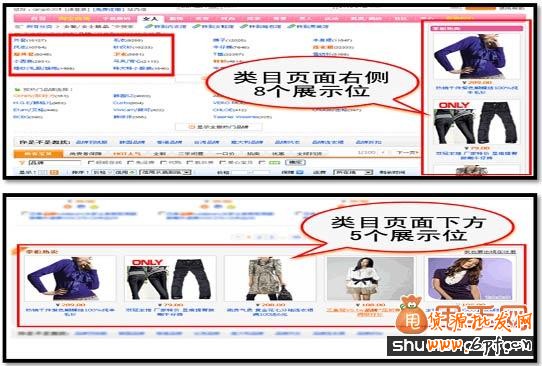B.類目搜索則是通過類目導航選擇進入的頁面。展現位置也為搜索頁面的右側8個和下方5個位置: