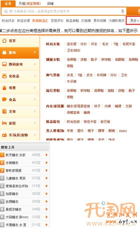 第一步進(jìn)入淘寶首頁(yè)搜索框,點(diǎn)擊“更多”進(jìn)入淘寶排行榜,如下圖所示