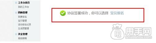 接著就會顯示商品團簽約成功,然后就可以選擇報名的寶貝了