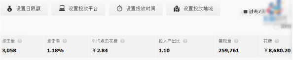 其實鉆石展位并沒有想象中的那么燒錢,只要人群定位精準,同時再限制日限額,不要一上來就大力投入,一點一點調(diào)整出價、定向等,花費還是可以得到很好的控制的,而且效果也會出乎你意料。