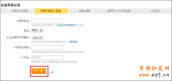 4、填寫申請人信息,(若申請人非法人,需要提供委托書),點(diǎn)擊【下一步】;