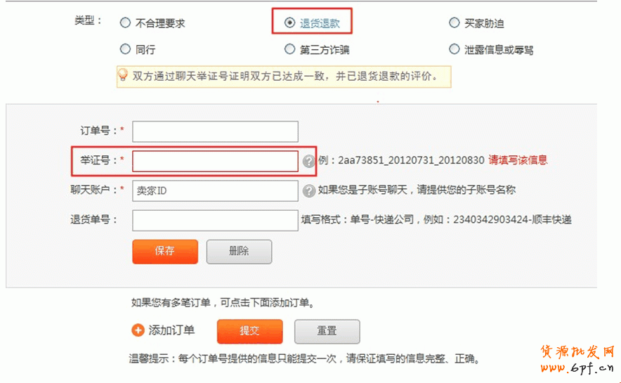 虛擬商品退貨退款/買家未收到貨進(jìn)行退款的交易,親們可以在頁(yè)面上提交溝通交易的舉證號(hào),以便客服更明確的了解交易情況核實(shí)投訴問(wèn)題哦。