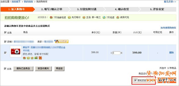 b)先將商品放入購物車的買家,在后續進入購物車時必須勾選“貨到付款”選項,如下圖所示。