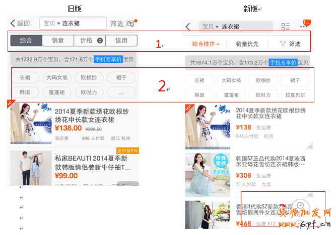 1、“價格”與“信用”排序被集成到”綜合“的下面,“篩選”下移至與排序同一行。