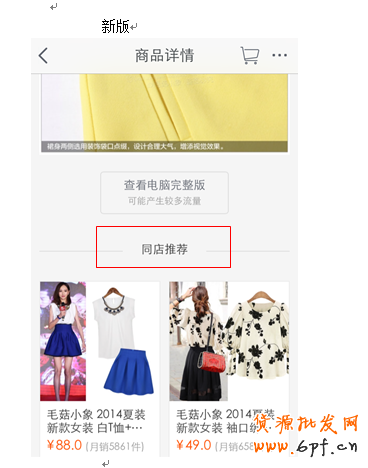 2、“同店推薦”從之前很深的位置改為直接出現在手機詳情頁的下面。