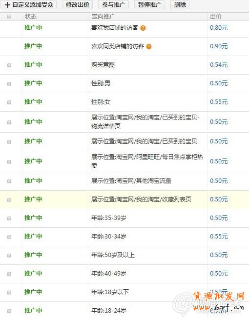 接下來這個方法就可以用在后期培養計劃里了,在第三步的初期計劃、中期計劃培養一段時間后,最終獲得有價值的關鍵詞控制在200個以內(幾乎沒有寶貝能夠有200詞以上有轉化的),如下圖,把精準計劃里所有的詞復制到其他三個計劃里。也就是說,每個詞會被投放4次,這個時候淘寶系統就發揮作用了,因為同樣的關鍵詞每家店鋪最多展示2個寶貝,最后得出的效果報表會把每個詞在每個計劃的效果發揮的淋漓盡致,重復推廣創意交叉流程,優勝劣汰,最終每個關鍵詞都找到自己的最優歸宿計劃(通過此法,部分關鍵詞在首頁同一個排名位置最優出價甚至節約了一半)。