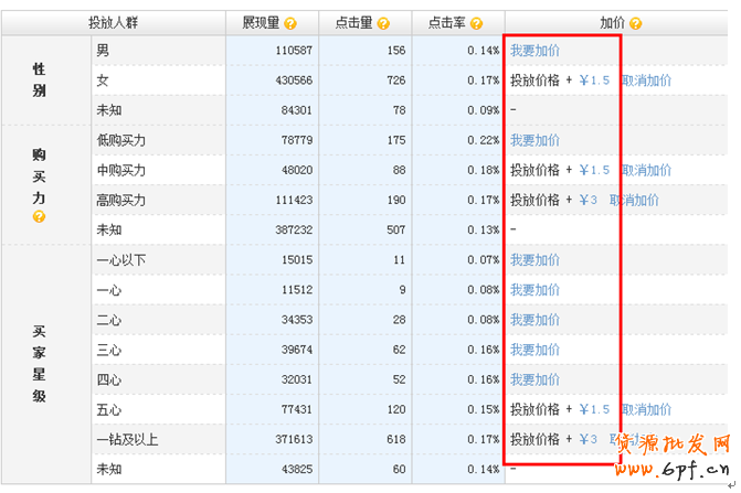 流量引入后,并不代表結(jié)束。掌柜需要做的是針對此款寶貝做定向推廣,對高購買力人群,進行針對性加價。