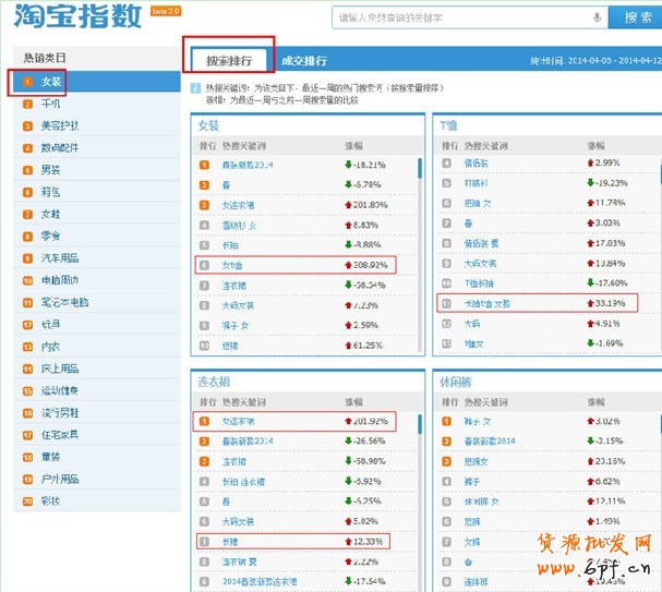 通過淘寶指數最熱搜的詞分析,下圖舉例:女裝搜索排行看出: