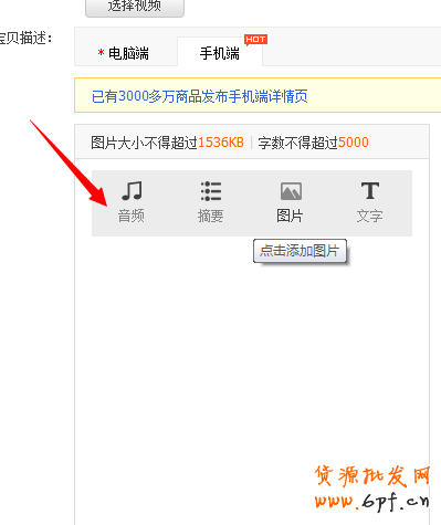 在手機端寶貝描述不能添加那么長視頻,所以聰明的淘寶人開發了音頻,它的位置就在手機寶貝描述里面: