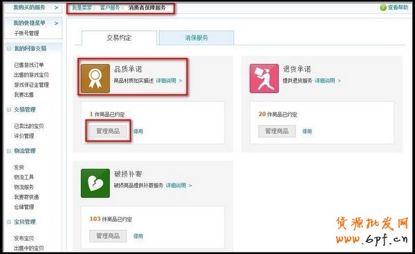 1) 符合條件的賣家可進(jìn)入“賣家中心”通過(guò)“消費(fèi)者保障服務(wù)”-“交易約定”管理模塊進(jìn)行設(shè)置