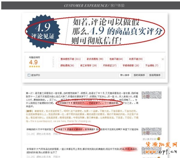 這個寶貝是我找的一個賣家的描述頁,這個賣家很好的把評價展示了出來,并且用明顯的標記把買家的評價里的噱頭標了出來。