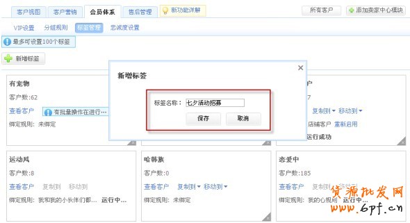 第一步,設置標簽。賣家進入會員體系頁面,確定好本次營銷活動主題后,在標簽庫中添加“七夕活動招募會員”的標簽。