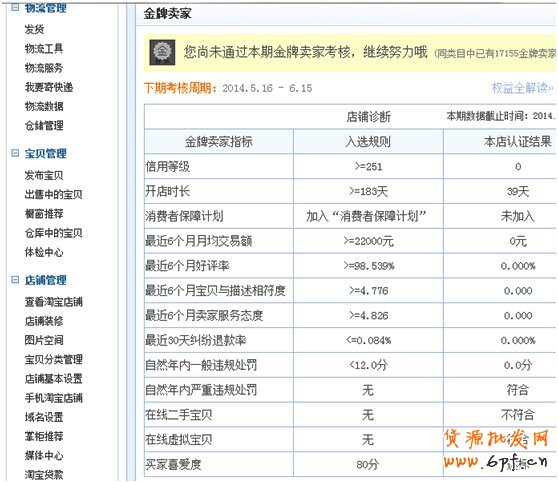 具體的指標,淘寶賣家還可以通過登錄賣家中心,在管理的頁面就可以看到自己那些指標合格,哪些不合格,如下圖: