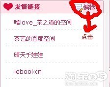 第四步:設(shè)置友情鏈接點編輯。會彈出一個對話框形式文本。鏈接名稱就寫你網(wǎng)店的店名例:茶話會,地址就寫你網(wǎng)店的網(wǎng)址然后點添加鏈接。