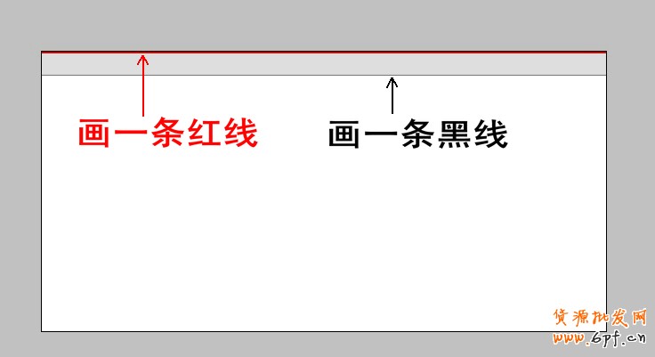 OK,接下來更加生動一點,選區鉛筆工具——在灰色區域的上方和下方分別畫一條紅線,黑線。注意:滑縣的時候按住Shift 就可以畫出直線了。圖片左上角可以寫上標題