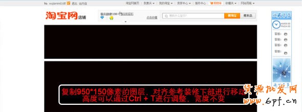 上面,我先是復(fù)制了某家店鋪的裝修,下面又新建一個店招大小的950*150像素的文件,復(fù)制到參考裝修上面,對齊店招部分,為的是精確地得到店招大小。