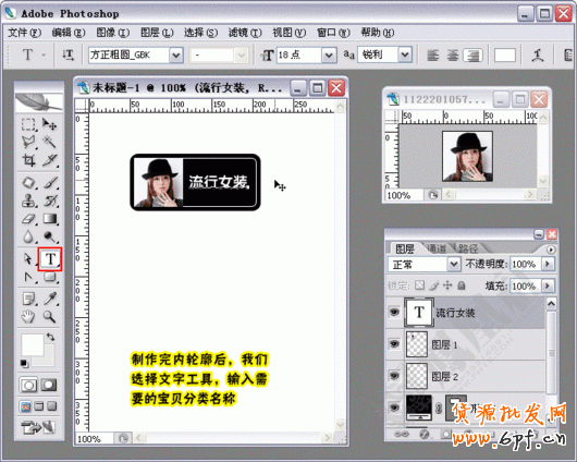 10.制作完內(nèi)輪廓后,我們選擇文字工具,輸入需要的寶貝分類名稱。