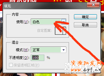 因為我們目標字體背景是白色的,所以我們這里填充內(nèi)容也要選擇白色的哦,選擇白色之后點擊確定,原來模板上的字就奇跡般的沒有了哦,