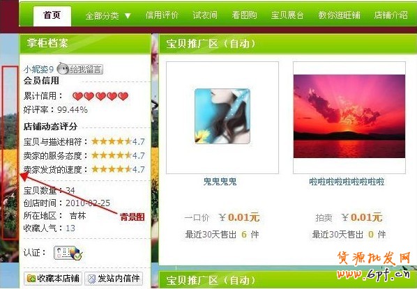 登錄“我的淘寶”—“我是賣家”—“店鋪管理”—“店鋪裝修”—“設置風格”—“自定義編輯”即可設置頁面背景和頁頭背景,頁面背景設置如下圖: