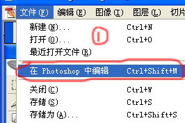 3點擊文件在ps里面編輯《如圖1》。另一種方法是點擊《如圖二》紅圈的那個,快捷方式是(ctrl+shif+m)