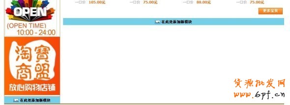 3、添加中間的基礎模塊(這個也是相當作用的,扶植版就只有三個自動推廣模塊的, 加入標準旺鋪后可以添加好多)首先跟添加左欄模塊一樣。點擊“在此處添加新模 塊”里: