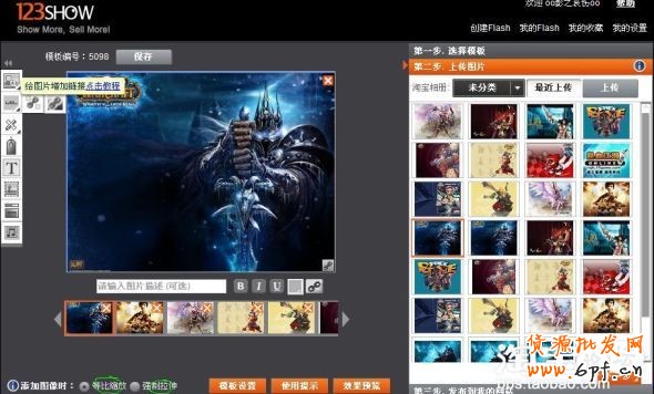 123Show寶貝動態展示服務,首先點擊編輯,進入后點擊插入Flash按鈕,下圖