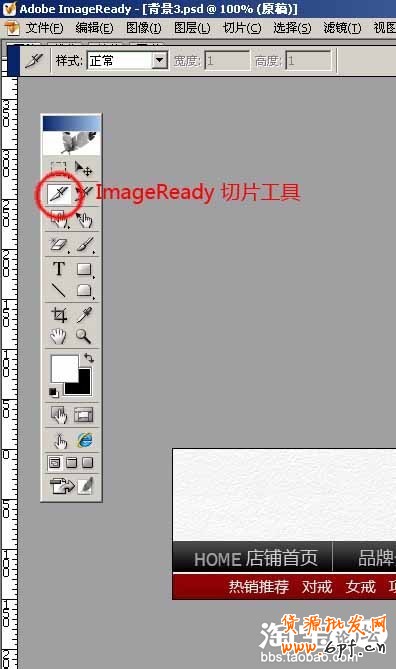 點擊紅圈所示進入ImageReady軟件編輯先前做好的“店招”。