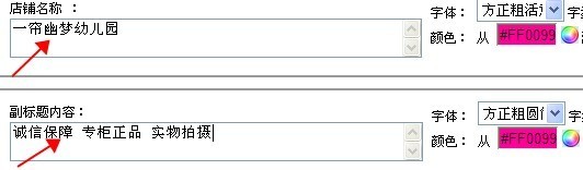五、打開(kāi)界面以后選擇制作,出現(xiàn)一個(gè)框架界面,在店鋪名稱里面輸入你的店鋪名稱 ,副標(biāo)題里面可以任意的加點(diǎn)促銷信息,具體的還是由你們來(lái)定!我只是隨便寫了幾個(gè)字,你們可以去設(shè)置下字體大小和店招匹配的顏色!
