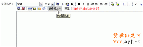 5、頁面中可以看到“寶貝描述”的編輯區,編輯器很像我們WORD軟件中,很方便的可以編輯輸入文字、插入圖片,當然也能到“編輯源文件”模式”,直接把寶貝模板的“裝修代碼”拷貝進去直接使用,不過這種描述代碼往往是要從設計師手里購買,不過不要著急,我們講的是不花錢裝修,當然自有好辦法,且聽下面詳解。