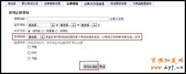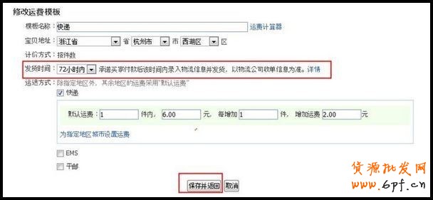 2) 在“發貨時間”選項合理設置發貨時間后,點擊“保存并返回”發貨時間設置即可啟用