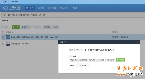 千牛網盤對于我們這些賣虛擬貨品的賣家來說會給于我們最大的幫助,我們再也不用但心我們所賣的虛擬貨品的鏈接會失效了。