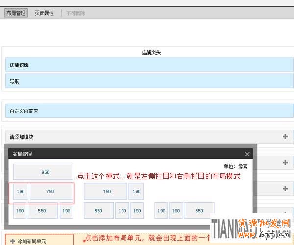 注意,很多新手,對(duì)于左側(cè)欄目,右側(cè)欄目如何添加自定義不明白。這個(gè)問題其實(shí)不難理解。你要在布局的時(shí)候,建立一個(gè)190+750模式的布局就行了。