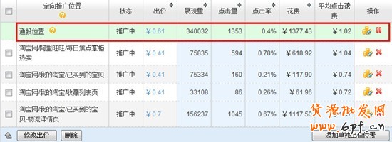關閉或者低力度推廣站外的定向,以防止通投位置展現量很大,點擊率比較低,導致定向質量得分降低。后4個精準位置根據類目和寶貝的不同轉化不同,可以根據轉化測試進行定價。
