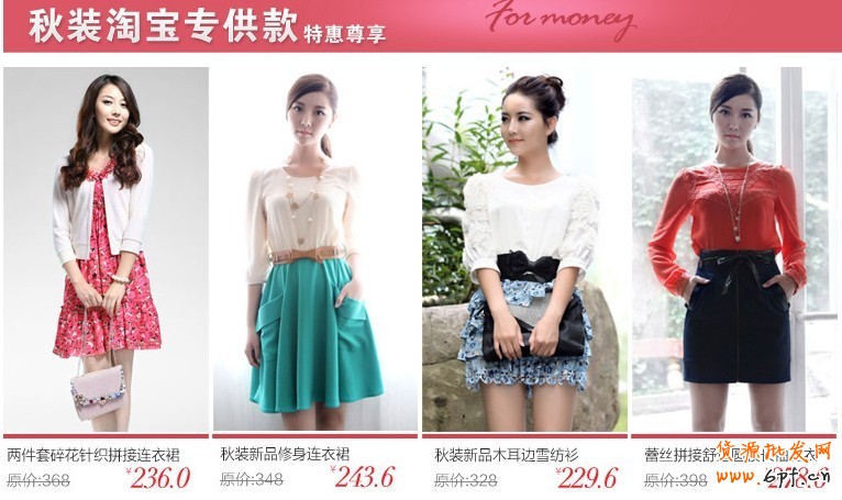 這是” 秋水伊人官方旗艦店”首頁的淘寶專供款的優惠活動,設置超鏈接,方便買家直接進入寶貝頁面,提升我們的頁面轉化率.