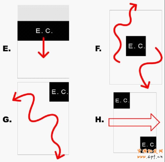 B.在同一背景區(qū)域移動(dòng)(在頁面某一部分明顯區(qū)別去其他部分的時(shí)候,人們會(huì)不斷的把視線集中在這,來回瀏覽。)