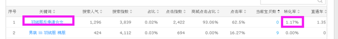 從數據魔方里面可以看到此關鍵詞的常規轉化率為1.17,那么我們做SEO時需要考慮兩個數值:(1)轉化率高于1.17;(2)低于1.17*2。至于具體操作,由賣家自行體會。后期我們需要追蹤數據,根據數據的反饋控制轉化,最終會得到我們的目標流量。