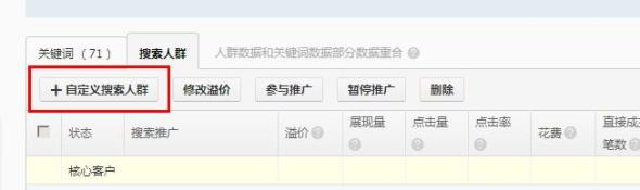 搜索人群這一功能主要包括3部分:核心客戶(hù),潛在客戶(hù),自定義人群。通過(guò)人群劃分,可以使直通車(chē)流量更為精準(zhǔn),同時(shí)提高用戶(hù)體驗(yàn)。