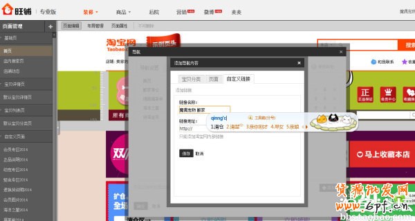 2.進(jìn)入裝修店鋪,選中導(dǎo)航模塊,點(diǎn)擊“編輯”,在導(dǎo)航設(shè)置里點(diǎn)擊添加,然后選擇“自定義鏈接”,在鏈接名稱那里寫上要顯示的字樣,比如“搬家清倉”,然后在鏈接地址那里寫上咱們的活動(dòng)頁面的鏈接,點(diǎn)擊保存,確定就可以。