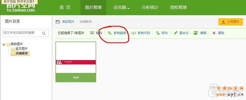2、上傳制作好的圖片到圖片空間之后,要在圖片空間里點擊上傳的圖片,這樣就會出現該圖片的鏈接地址,如下圖所示: