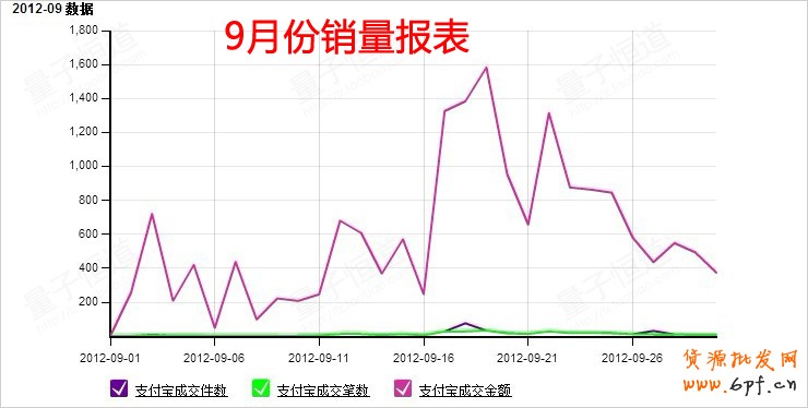 圖中是我店鋪9月份的銷量報(bào)表,在9月25日以前,店鋪的銷量不斷提升。26號(hào)后,因?yàn)榻咏鼑?guó)慶,所以有下降的趨勢(shì)。