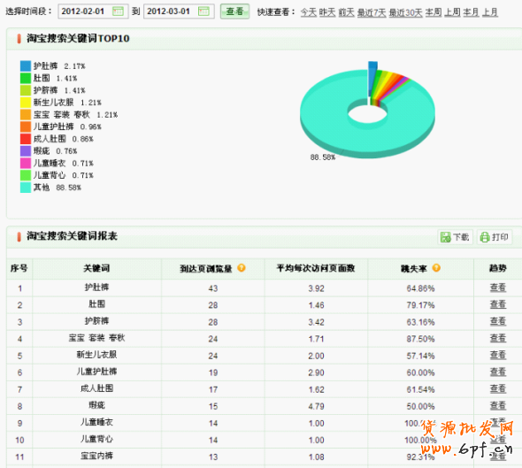 量子統計里面淘寶自然搜索流量提高了很多,更加可喜的是很多關鍵詞來源是優化中選用的詞匯,這說明標題優化是有成效的。