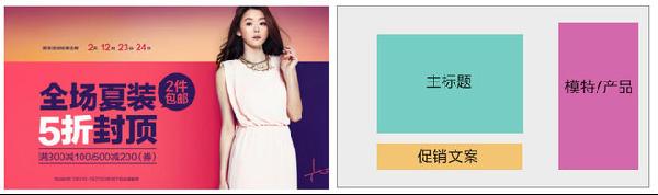 這種斜切構(gòu)圖更加時尚動感,但是在傾斜度的控制方面要做得比較細致,一般以不超三十度為好。版面結(jié)構(gòu)很重要,元素配比要掌握平衡度,字體大小,粗細等。另外,文案的內(nèi)容組織方面也盡可能將寶貝的優(yōu)勢表現(xiàn)出來。